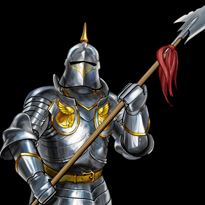 Ces soldats sont généralement munis d’une lance, d’une épée et de boucliers en fer ou en acier. Attaque : 48+2D10 Hallebarde Talents liés au combat (3 au choix parmi) : Offensifs : Désarmement, Enchaînement, Attaque furieuse Défensifs : Expert en bouclier, Expert en parade, Parade de projectiles Neutres : Combat en lieu difficile, Main ferme, Renversement Talents généraux (2 au choix parmi) : Collecte d’information, Résistance, Jour de chance. |